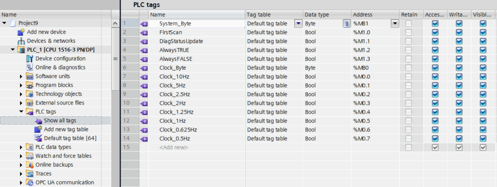 Una vez activados los bytes, automáticamente se agregan los tags para cada uno de ellos y para cada uno de los bits, para así poder utilizar direccionamiento simbólico.